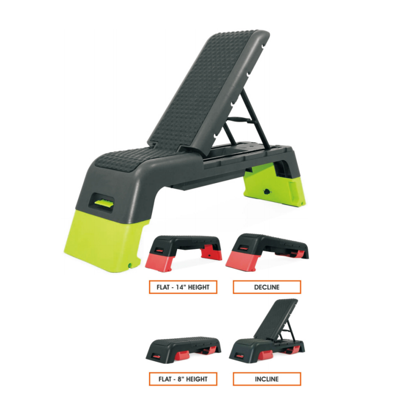 - ·STRONG & DURABLE MATERIALS:ProfessionalAerobicDeck is made of sturdy & dense plastic.·Can be used as a weight bench, step,plyometric and ramp.Support up to135kg·DIMESIONS: 112.5 x 34 x 20.3cm, weighs 14.4kg or 112.5 x 34x35.5cm when raised·Easy to adjust the height by "click and lo
